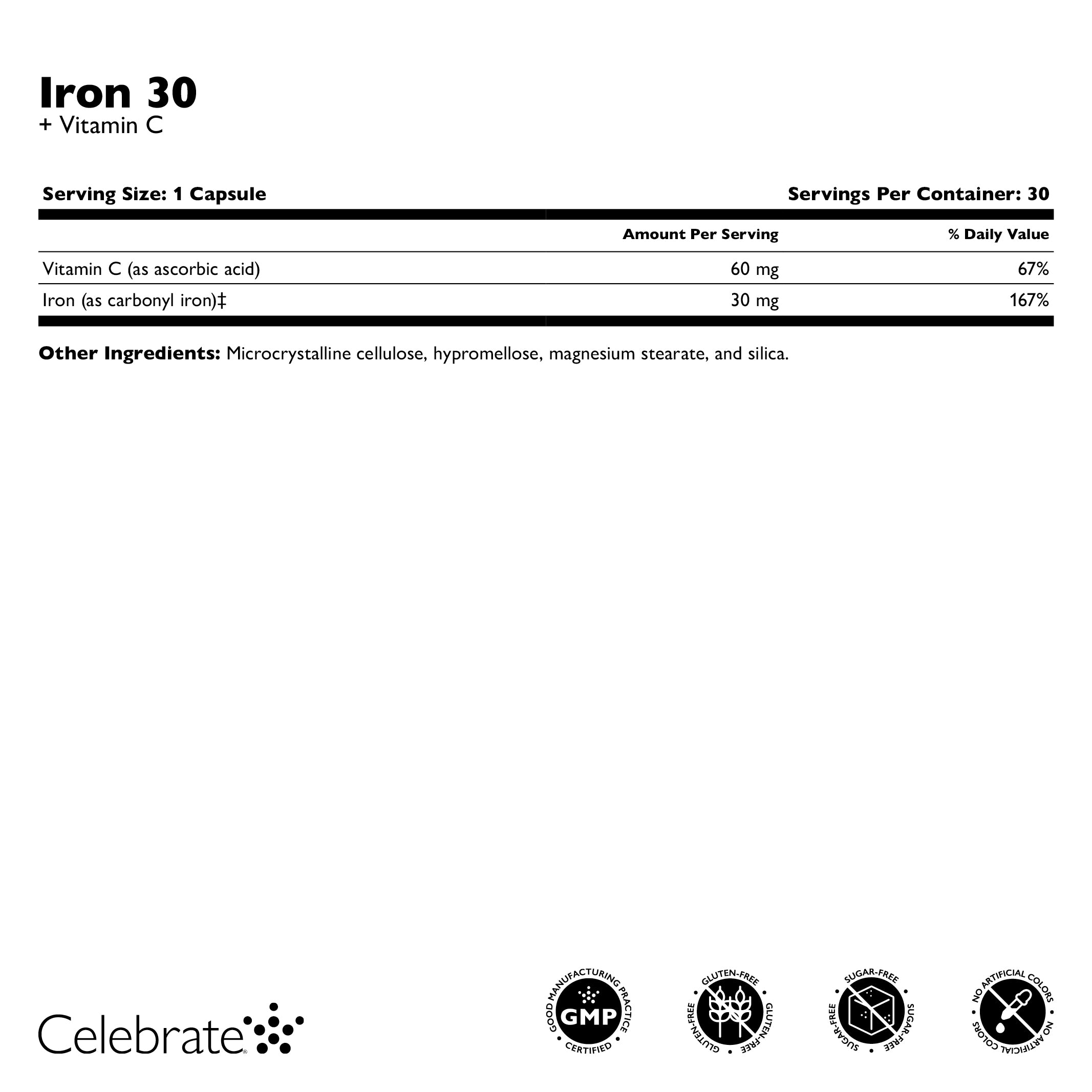 As nossas cápsulas Ferro + C fornecem 30 mg de ferro mais vitamina C e são perfeitas para pacientes pós-cirúrgicos que procuram uma dose específica de ferro.