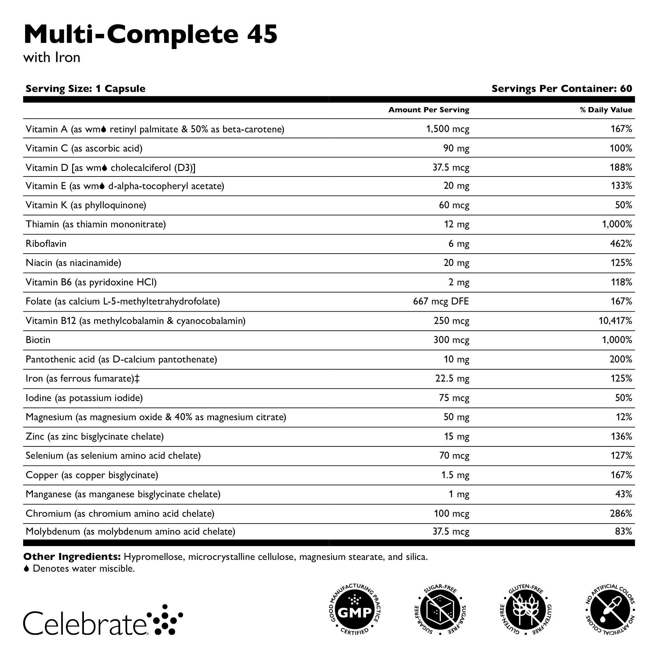 Celebrate Multi-Complete 45 contém todas as vitaminas e minerais em uma opção de dose dividida, duas vezes por dia, os pacientes só precisam adicionar cálcio. Esta opção é perfeita para o paciente que é sensível a doses mais altas e precisa dividir a dosagem para melhor tolerância. Este multivitamínico bariátrico atende aos padrões ASMBS de multivitamínico e ferro após a cirurgia bariátrica. Esta fórmula integrada oferece máxima biodisponibilidade, pois selecionamos cuidadosamente cada forma de vitamina e mineral para melhorar a interação e absorção. MC-45 está disponível em dois sabores mastigáveis (Floresta Berry e Watermelon) ou em cápsula.